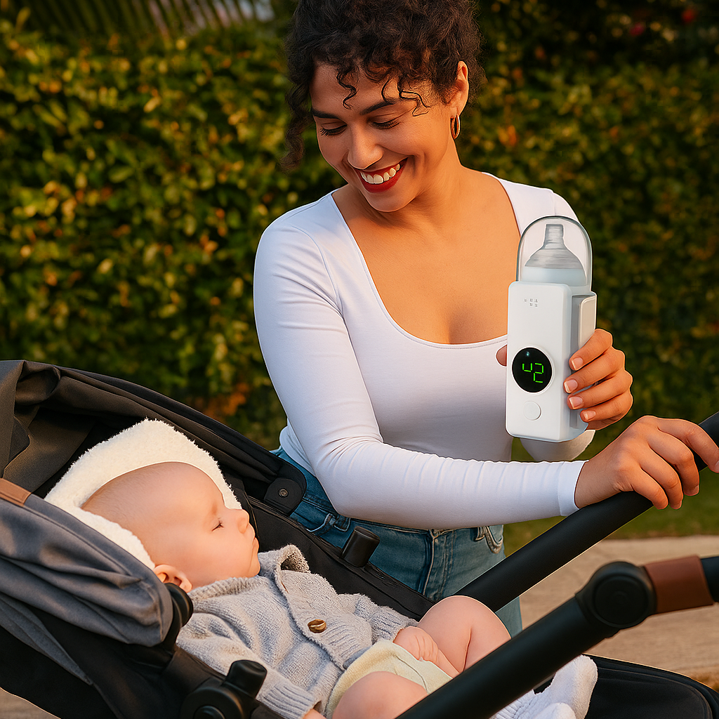 Your baby's hungry. You're in the car, at the park, or running errands. No problem. Just press one button and get a perfectly warmed bottle in a few minutes. Fits in your diaper bag, works with any bottle, and runs on rechargeable battery. No more waiting. No more stress. Just feed and go.